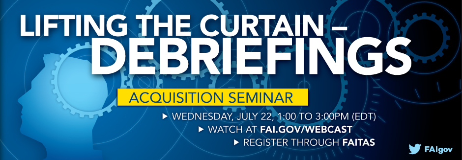 Join this Acquisition Seminar where we uncover and share experiences and thoughts of the Federal contracting process from both government and industry. During this seminar, we will conduct mock debriefing engagements between real industry and government procurement professionals to provide a first-hand look of the Federal contracting process from both sides.